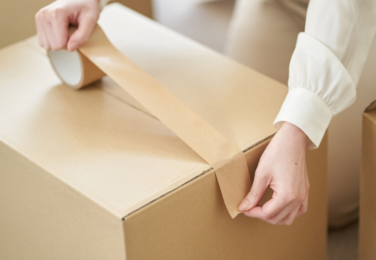 注文をいただいた商品を丁寧にラッピングし、配送に向けて箱詰めや伝票の準備を行います。花がきれいなまま届くよう工夫する、大切なお仕事です。